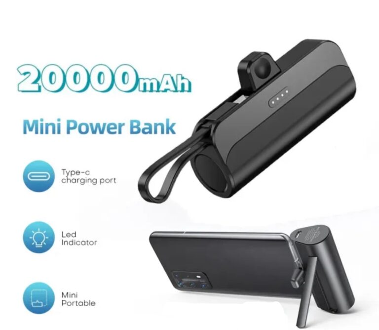 Ultra-slim 20,000mAh powerbank with built-in Lightning and Type-C cables for fast charging. Lightweight, powerful, and ideal for long journeys.
