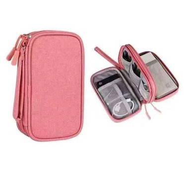 A compact organizer with multiple compartments for powerbanks, hard drives, cables, and earbuds. The best way to keep your tech accessories neat and tangle-free while traveling.