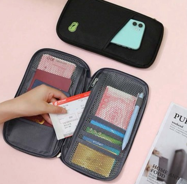 A multifunctional travel document pouch with a waterproof design — perfect for passports, cards, boarding passes, and cash. Ideal for organized and secure travel.