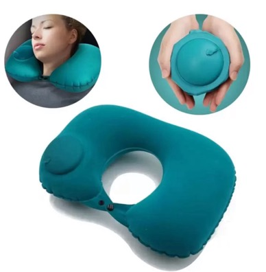 A lightweight inflatable neck pillow with ergonomic U-shape design to prevent neck strain on flights, trains, buses, or even at the office.