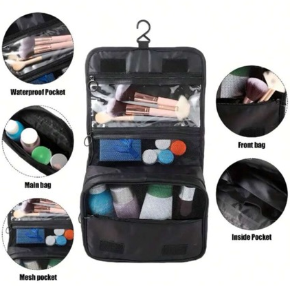 A spacious and waterproof toiletry bag with a hanging hook — perfect for hotels, travel, business trips, and everyday use. Lightweight, organized, and easy to access.